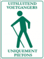 Deze weg mag uitsluitend door voetgangers gebruikt worden. Met voetgangers worden gelijkgesteld: wandelaars, joggers, langlaufers, fietsers jonger dan 9 jaar en rolstoelgebruikers. Fietsers en ruiters mogen hier geen gebruik maken van de weg, tenzij een extra bord het toelaat.