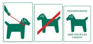 Honden mogen mee wandelen, maar moeten verplicht te allen tijde aan de leiband blijven. Waar men problemen verwacht, herinnert een bord u hieraan. In extremis kan het zijn dat honden verboden worden. Dan staat dit expliciet aangegeven. Houd dus je hond steeds aan de leiband zoal het hoort, tenzij anders bepaald. Sommige gebieden hebben een hondenzone waar de hond vrij mag rondlopen.